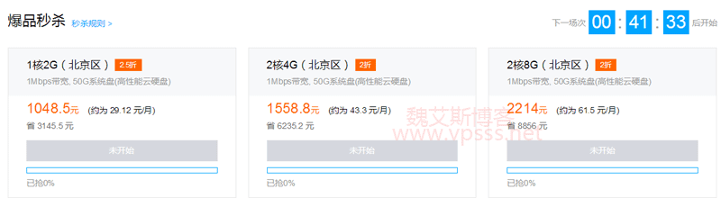 腾讯云秒杀活动过半,今天上午推出的是大容量高配置的机型,下午魏艾斯博客看到有1核2G、2核4G这种比较适合入门型、性能均衡型配置的机型,于是分享给大家,看看是否有需要的朋友借此机会抢到手。