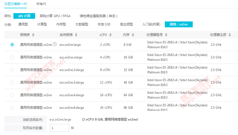 通用网络增强型实例sn2ne | ecs.sn2ne.large | 2 vCPU | 8 GB | 271.7 元/月 | 领券购买 |
