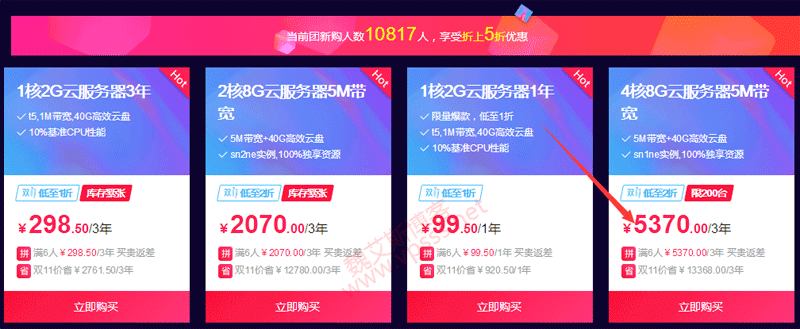 参团后能拿到5370元/3年的最优惠价格,参团满6人才能享受这个价格,老魏所在的团已经满足这个条件了,你只需要点击下面的参团链接,找到4核8G5M带宽机型,点击立即购买,付款即可。