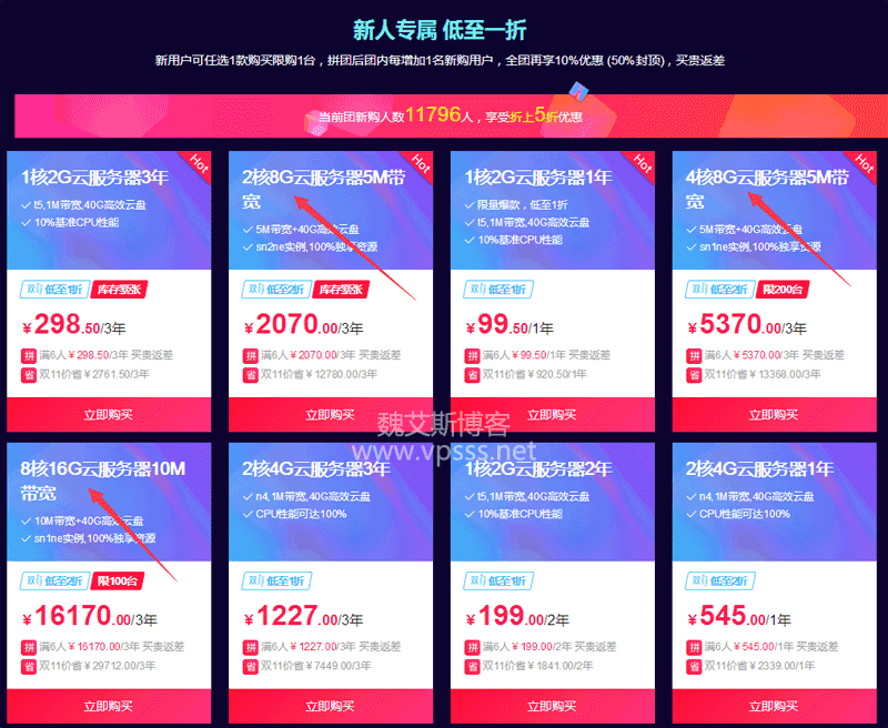 5M带宽4核8G官网原价11878.2元/3年,拼团活动价格5370.00/3年;