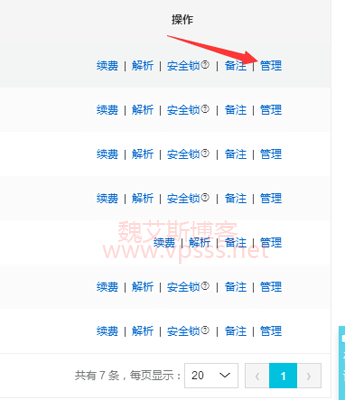 先点我登陆阿里云账号,在管理控制台找到并点击“域名”,右侧找到你要修改的域名,最右侧找到并点击下图的“管理”。