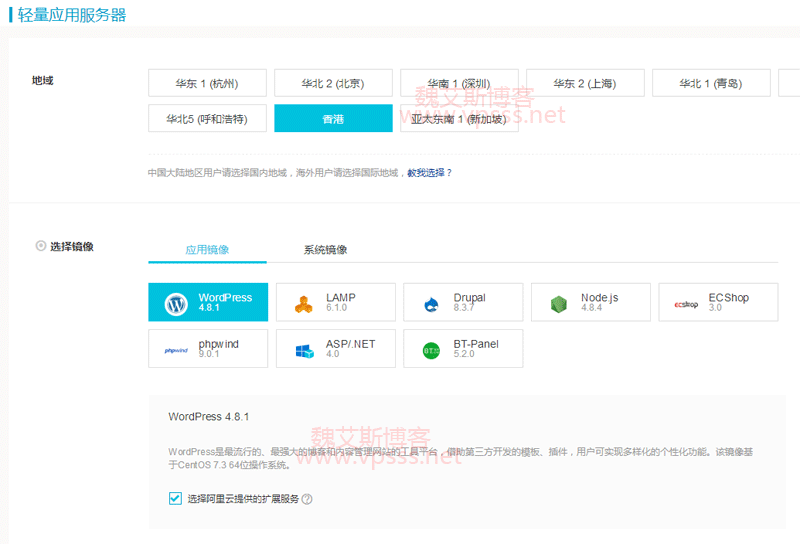 2、选择镜像这里根据个人需要,如果你不太懂的话,按照默认的wordpress也可以。