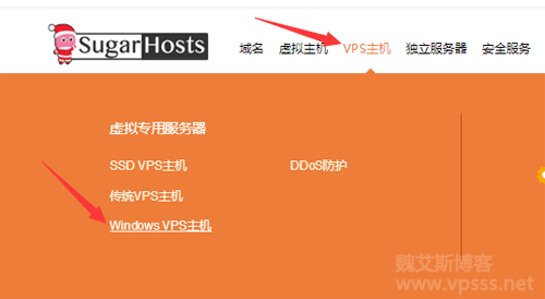 1、从上面链接进入糖果主机官网,点击“VPS主机”,下面点击“windows VPS主机”,进入选项。