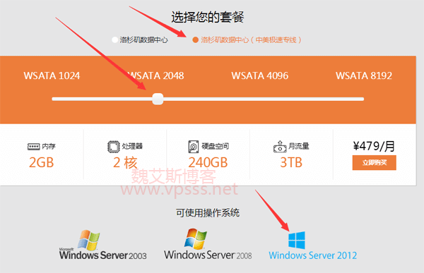 记得现在要选择windows server 2012系统了,不要再选前面的2003和2008系统,已经过时了。