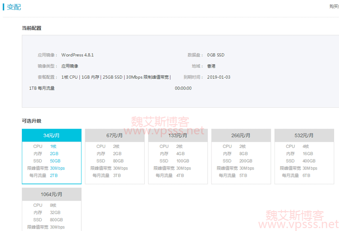 阿里云轻量应用服务器怎么升级配置?阿里云轻量应用服务器是阿里云面向新手推出的一款易学易用的云服务器类型。在购买并使用了一段时间轻量应用服务器后,有朋友会遇到现有配置不够用的情况,就需要升级配置。魏艾斯博客就这个问题特意咨询了阿里云客服,得到的答复说是可以正常升级到更高配置的。升级方法和ECS服务器略有不同。下面魏艾斯博客讲一下如何升级阿里云轻量应用服务器配置的过程。