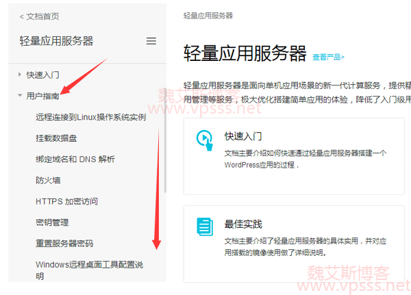 以后遇到此类问题大家可以多看看官方帮助,比如阿里云轻量应用服务器帮助,帮助里面写的挺清晰的,可以少走很多弯路。