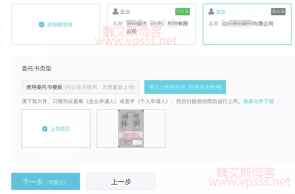 按照页面要求填写委托书模板信息,也可以上传单次委托书,满足企业合规需求。