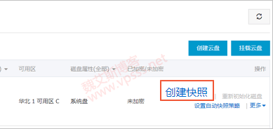 创建快照会轻微降低磁盘的I/O性能,所以尽量在非业务高峰期使用。