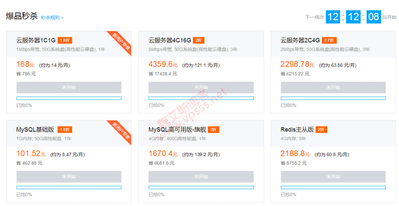 另外还有MySQL基础版、MySQL高可用版旗舰版和Redis主从版可以选择,价格都是平时买不到的。