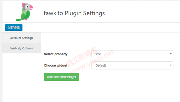 1、用上面注册的账号密码登陆,select property(就是上面注册时候输入的site name)是给多个站点准备的,choose widget是选择聊天窗口样式。保存之后,最后一定要点击保存更改,不点这个按钮前台还是看不到聊天窗口的。