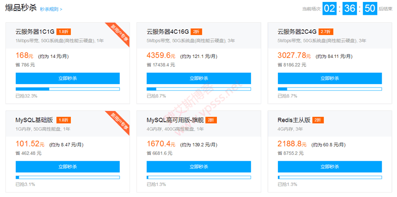 1、5M带宽2核4G内存,3027.78元/3年。这个没啥好说的了,一直以来都是最经典的机型,每天支撑几万访问量没问题。可选广州、上海、北京地域,而且今天是最后一天秒杀服务器了,大家有需要就早点下手吧,很多人都盯着这个呢。