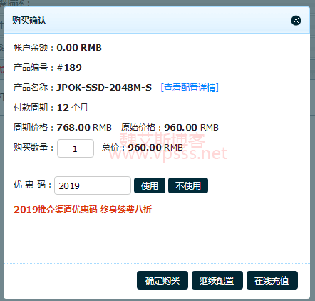 充值通道:客户中心左侧 帐务管理与充值 在线充值预存款即可。点我购买
