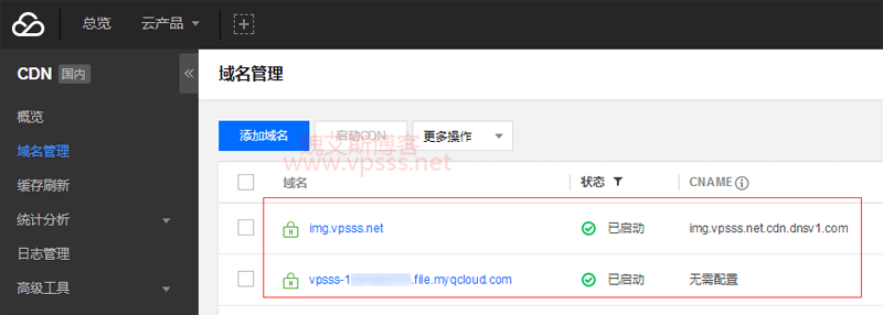 域名前缀 img 和 img.vpsss.net.cdn.dnsv1.com 记录下来,后面要用。
