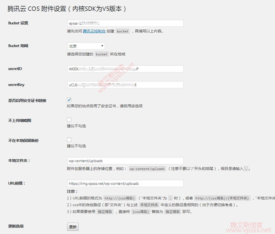 之前写过一篇腾讯云COS对象存储WordPress插件 让网站动静分离跑的更快,里面记载了上一次使用水冷眸、沈唁志开发的腾讯云 COS 插件全过程,经过一番折腾,也联系了原作者帮忙,因为第一次经验不足最后还是失败了。文章后面老魏说可能是主题和插件不兼容,现在来看问题出在老魏操作不当了。过了 5 个月之后,在群友@政史提示下,现在老魏重新折腾了水冷眸的腾讯云 COS 插件,再加上腾讯云客服的一番指导,终于成功的把静态图片放在腾讯云 COS 上并且网站也能够正常显示了。因为这个过程实在是比较的繁琐,有一步出错后面就搞不清楚了。所以大家操作的时候一定要细心,按照老魏的步骤做下去,一定会成功的。