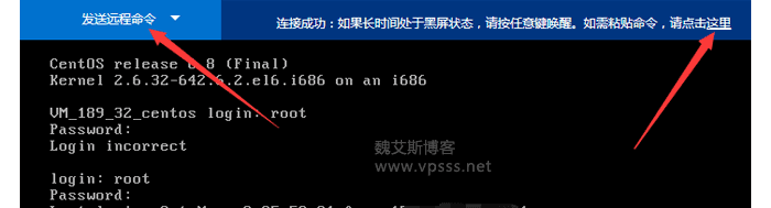 左上角是发送远程命令,粘贴命令在右上角的“请点击这里”,而不是阿里云那种很显眼的按钮提示。