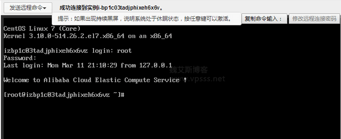 输入root账号密码后,就进入 SSH 命令行界面了。