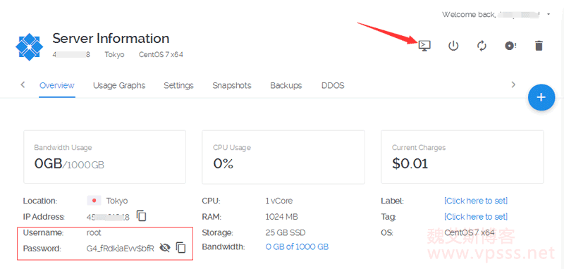 点我打开 Vultr 官方网站,登录后在 Server 列表的右上角找到一台小电脑,这就是 SSH 功能按钮了。
