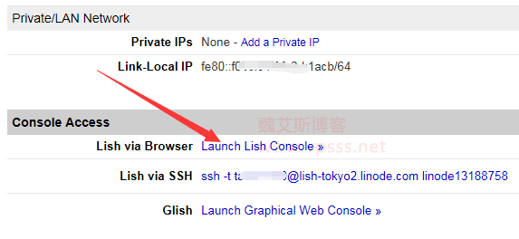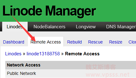 点我打开 Linode 官方网站,它的网页端 SSH 在Remote Access 页面的最下面。