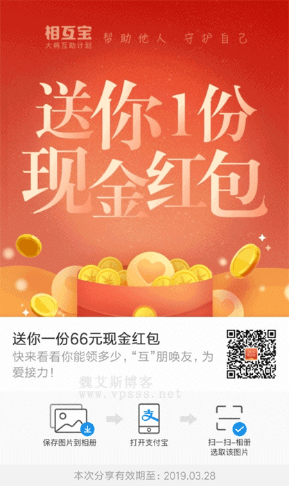 加入相互宝的办法有两种,可以领取一份现金红包,最高 66 元。