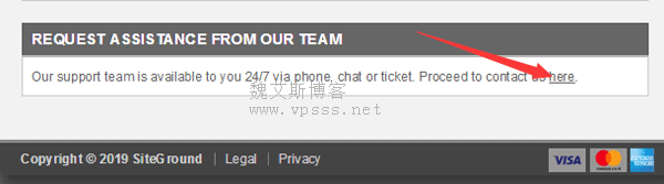1、点我登录 Siteground 后台,在网页菜单栏的 Support 栏目最下方找到联系客服的入口。