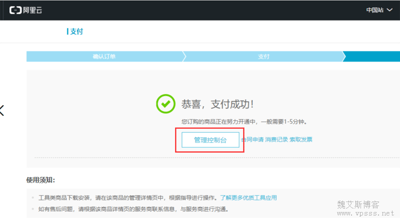 记得先去领取上面提到的阿里云代金券,付款时可以省钱。