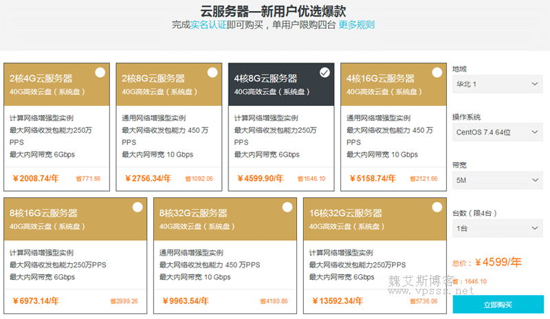 下图中的价格是老用户的价格 4599元/年,老魏使用老用户登陆的看不到新用户的价格,如果是新用户的话会便宜一些。建议大家注册新用户去购买,点我领取阿里云千元代金券礼包,购买阿里云 150+ 产品,抵用 50 元起。可以省钱。