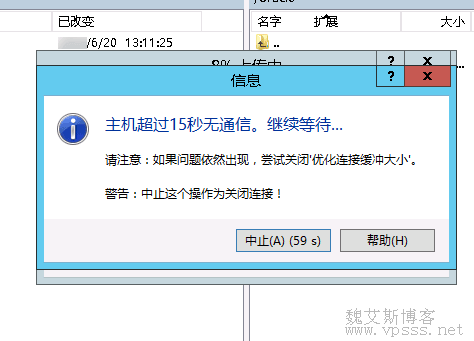 本文主要是@伟骏 同学咨询有关 winscp 软件无法链接服务器的问题。错误提示:主机超过 15秒无通信,继续等待,要求优化连接缓冲大小。