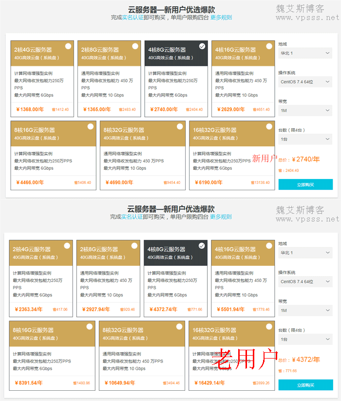 阿里云在对待新用户和老用户方面政策不同。为了拉新用户、抢占市场份额,阿里云给新用户的优惠价格是真的很低,不过仅此一次而已。比如本文提到的 4核 8G内存 1M带宽云服务器,阿里云新用户购买价格 2740元/年,而老用户购买价格 4372元/年。
