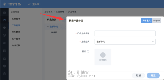 如果是多语言网站,需求切换到其他的语种维护分类名称,否则会默认为中文分类名称。
