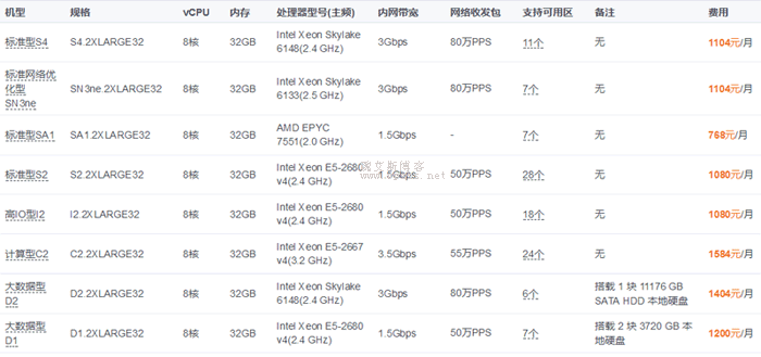 除此之外的机型都是独享机型,性能比较强。