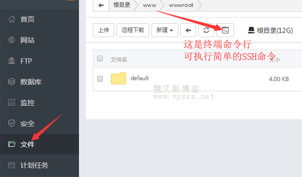 第二种方式是用上面提到的宝塔面板的终端命令功能操作。
