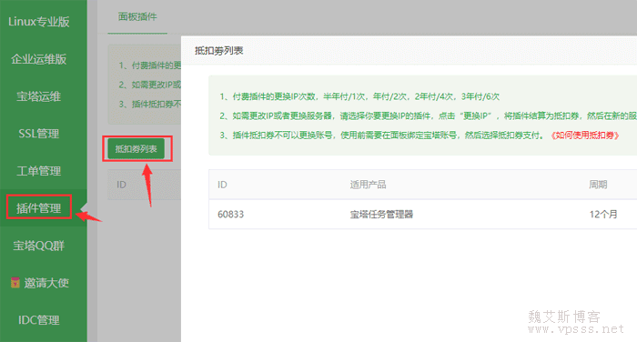 4、如何查看插件抵扣券,后台》插件管理》抵扣券列表