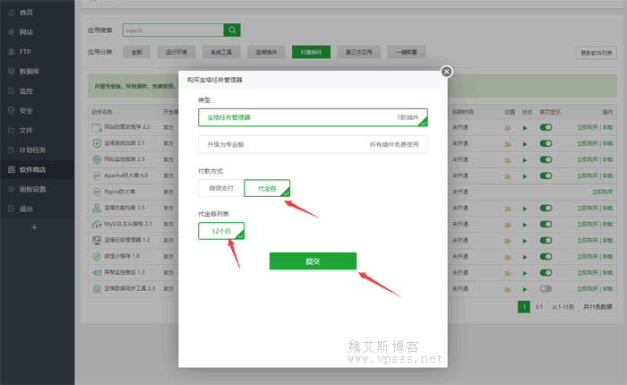 5、如何在面板上使用抵扣券,登录面板,绑定官网账号,软件商店,购买插件,代金券支付。