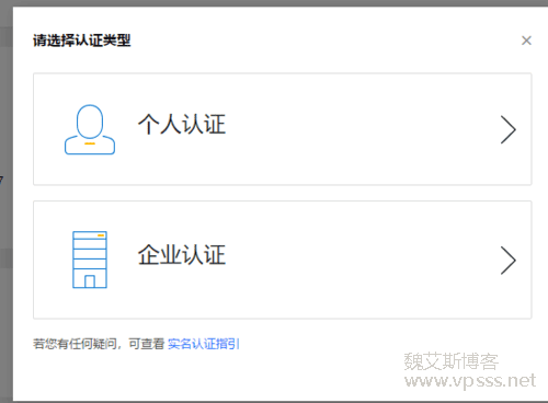 分为个人认证和企业认证。二者区别在于如果你选择大陆地域的云服务器,那么个人认证只能申请个人网站备案,企业认证可以申请企业网站备案。所以这里根据你的业务需要进行选择。