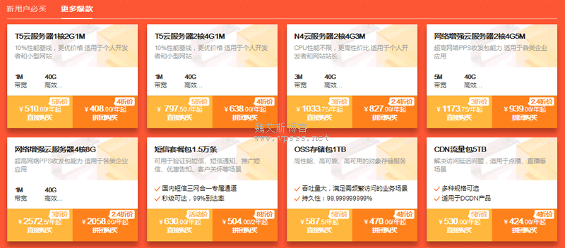 网络增强云服务器2核8G5M 1年 | T5云服务器1核2G 2年 | T5云服务器1核1G 3年 | T5云服务器1核1G |