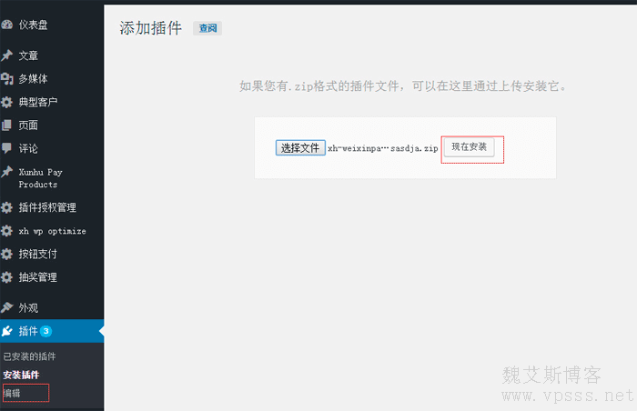 下载插件以后,在WordPress后台上传安装插件,安装。这是常规操作,不啰嗦。