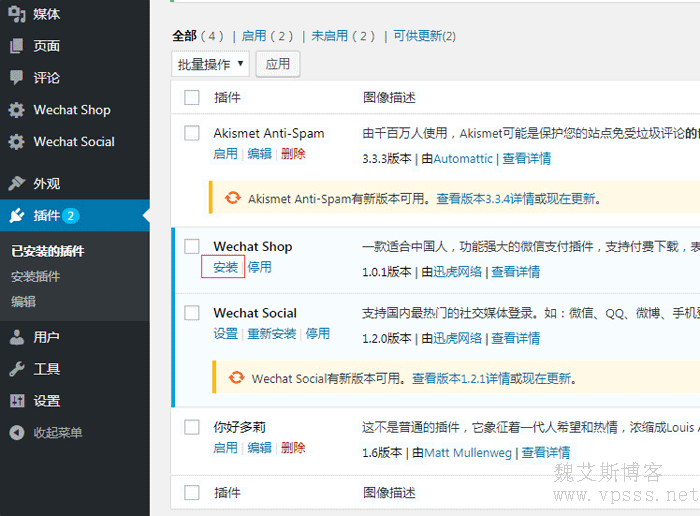 WordPress付费阅读插件是用来付费阅读 wordpress文章用的。现在是知识经济的时代,为内容付费逐渐成为了网络主流。那么 wordpress程序作为互联网上使用人数最多的建站程序,也有第三方提供了付费阅读插件来满足个性化需求。简单方便的将付费内容插入文章,用户付费后才能看到收费内容,支持支付宝和微信支付。本文中魏艾斯博客会一步一步介绍WordPress付费查看插件的安装过程、使用方法。