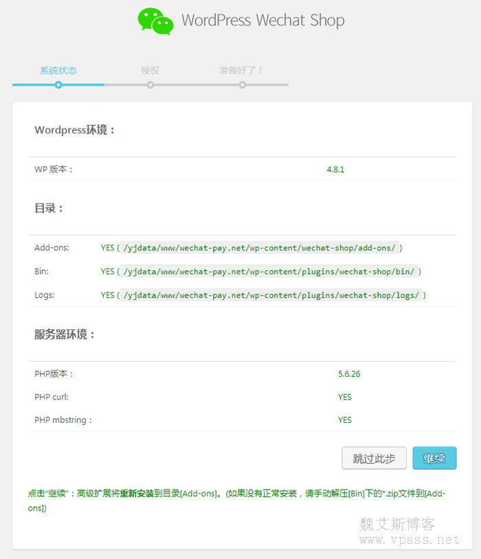 安装界面,检查系统环境,全部绿色,可正常安装,如果是红色,根据提示修改为绿色即可,输入授权码。