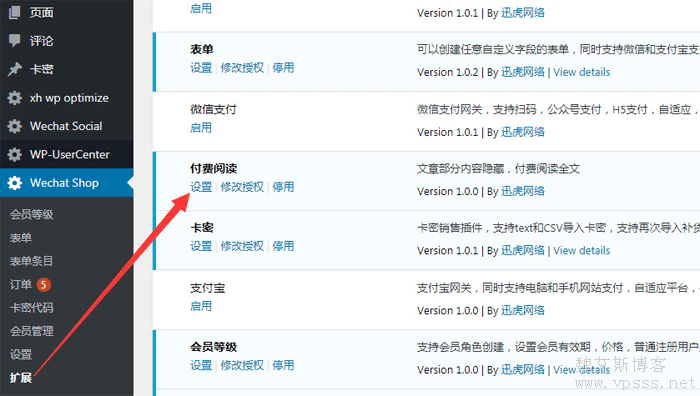 在插件列表中分别启用付费阅读,支付宝和微信这三个插件。