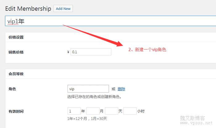 如果购买了VIP插件,在插件中启用会员购买,创建 VIP的价格和有效期绑定或新建角色。