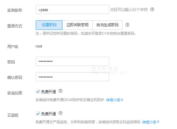 安全加固和云监控建议勾选,免费送的可以监控并汇报主机情况。