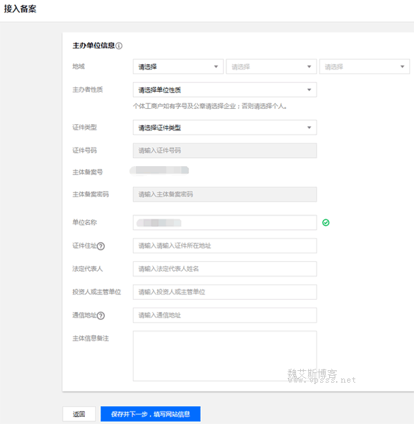 说明:若有多个网站需要接入备案,请在完成填写后保存并添加网站,填写下一个网站信息。