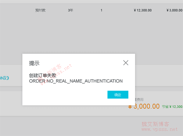 看到这个错误提示,一开始老魏也是蒙圈的,从字面意思看是订单没有真实名字授权,这算什么提示呢?后来问了阿里云工单,工单回复说这是因为企业账号没有实名认证的缘故。