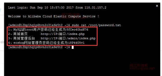 看到 ECShop 的数据库密码、商城管理后台信息、网站管理员密码等信息,记录下来备用。