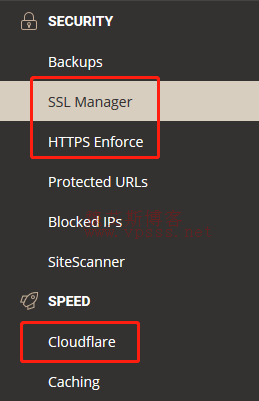 这次用到的是 security中的 【ssl manager】和【https enfore】,【speed】中的【cloudflare】和【caching】这两个功能。