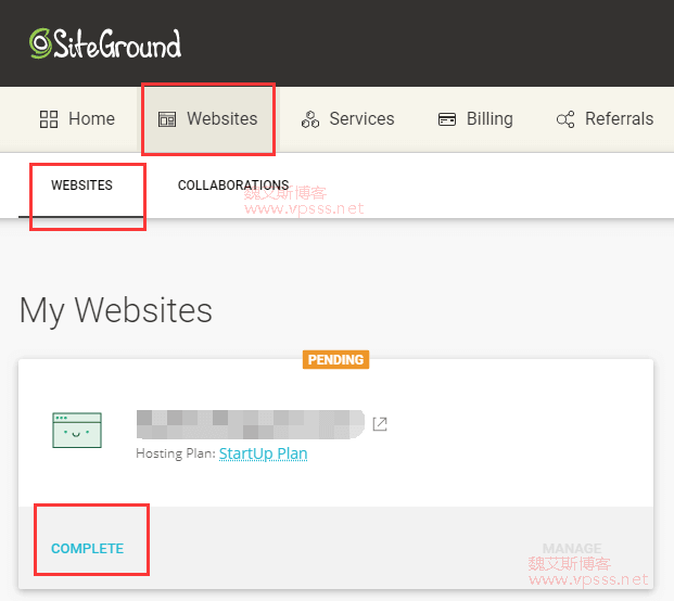 也可以从 siteground 上面的导航栏,点击【websites】,点击域名最右侧的 【site tools】,进入管理面板,以后大部分工作都在管理面板中完成了。