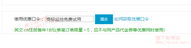 老魏尝试了注册 cn域名原价格29元,使用优惠码之后是19元;