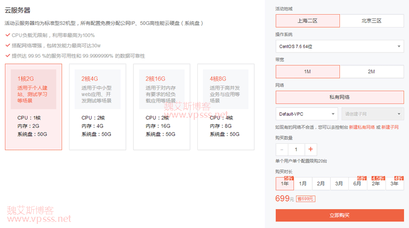 1核1G 北京/上海 Linux/Windows | 2核4G 北京/上海 Linux/Windows | 4核8G 北京/上海 Linux/Windows |
