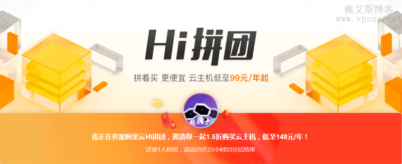 双11拼团活动已结束。用户可参与返场拼团活动——HI拼团,意犹未尽?HI拼团返场,新老用户均可购买云服务器ECS 99元/年