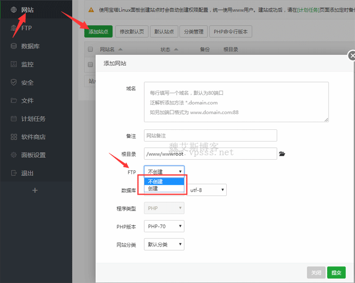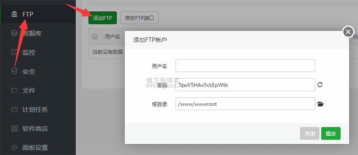 宝塔面板有创建ftp账号功能,可以为你创建不限数量的 ftp账号,每个ftp账号有不同权限,分发给用户使用就很方便了。在宝塔面板中创建 ftp账号有三种途径,老魏在下面分享这三种不同方法如何操作。